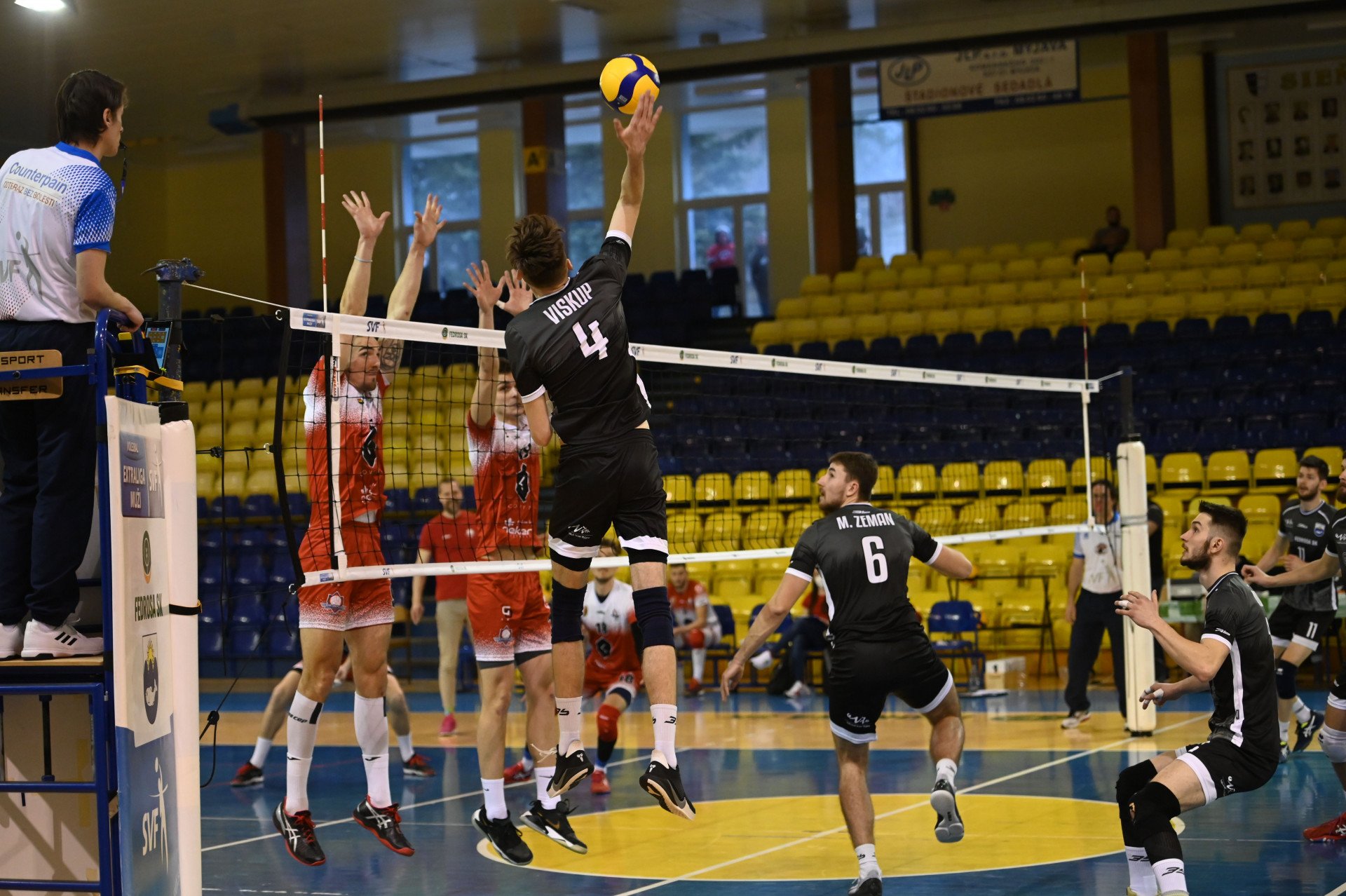 A Rieker UJS Komárom férfi röplabdacsapat 3:1-re megnyerte az extraliga döntőjének első mérkőzését a VO TJ Spartak Miava ellen. Ezzel 1:0-ás vezetést szereztek a sorozatban, ahol három győzelemért játszanak. A vendégek legjobb játékosa František Ogurčák kapitány lett, aki 19 pontot szerzett.